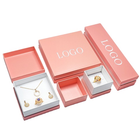 Оптовая продажа, маленькая бумажная упаковочная коробка для ювелирных изделий с индивидуальным логотипом, розовая Роскошная